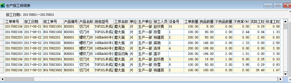 由正航軟件單獨(dú)為多工序行業(yè)開發(fā)的報(bào)工系統(tǒng),操作方法是:由生產(chǎn)主管先打印出生產(chǎn)制令單(把單號及工序名稱等變成條碼),給到現(xiàn)場生產(chǎn)人員,生產(chǎn)人員在開工前,將需開工的工單交給車間錄單人員登記開工。錄單人員掃描槍直接點(diǎn)開工,掃描工單號,再掃設(shè)備號,再掃人員編號,點(diǎn)開始,系統(tǒng)就成了開工狀態(tài),并保存在一個(gè)數(shù)據(jù)表中,然后生產(chǎn)完成時(shí),再掃描工單號,系統(tǒng)自動帶出剛才那些開工信息,只需要手工輸入數(shù)量(如果有不良品就再輸入不良品數(shù)量,選擇不良品原因),點(diǎn)確認(rèn),系統(tǒng)就記錄了實(shí)際的加工工時(shí)及相關(guān)信息,然后生成系統(tǒng)的報(bào)工單;現(xiàn)場可通過電子看板即時(shí)了解生產(chǎn)一線的情況。